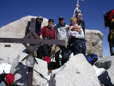Die Truppe feiert den Gipfel mit Glockenläuten. |
